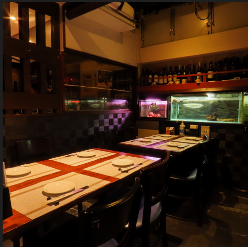 16名-18名 10名様からご利用できます。水槽にも設置しており、お食事しながらお魚の姿を見ることができます。最高リラックスタイムです。スタイリッシュな店内を間接照明がやさしく照らします。貸切予約もOK♪プチパーティーやデートにぜひご利用下さいませ。