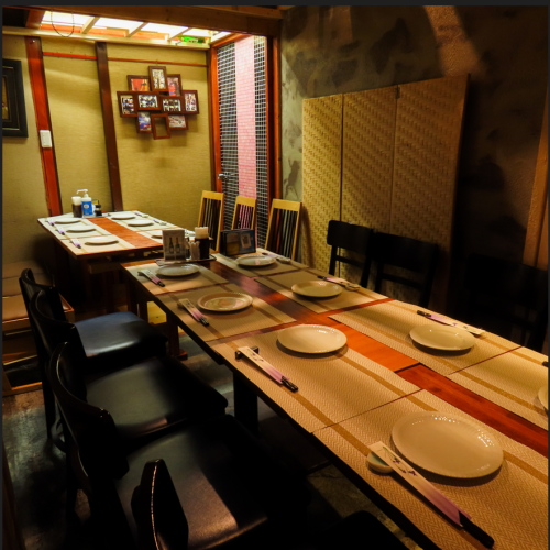 12名様な個室で、9-12名でご利用できます。個室で、スタイリッシュな店内を間接照明がやさしく照らします。貸切予約もOK♪プチパーティーやデートにぜひご利用下さいませ。